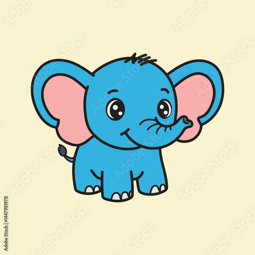 © ikhwan, Fototapeta premium Cute cartoon baby elephant illustration in blue with big ears and happy expression, perfect for children’s books, posters, and educational materials.
