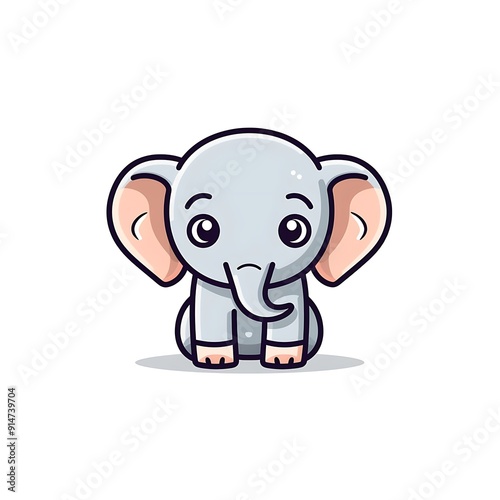 © Gerges, Fototapeta premium Cute Cartoon Baby Elephant Sitting On White Background