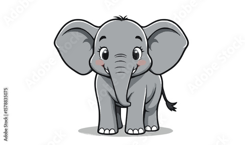 © G Abbbas, Fototapeta premium Cute Cartoon Baby Elephant Vector – Smiling Front View Animal Illustration