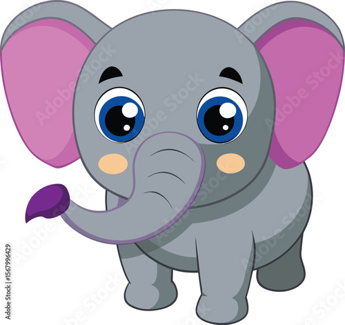 Naklejka premium Cute Cartoon Baby Elephant with Big Ears and Pink Accents – Adorable Animal Illustration