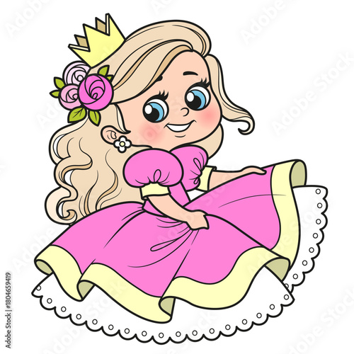 Naklejka premium Cute cartoon baby princess in pink ball dress isolated on white background