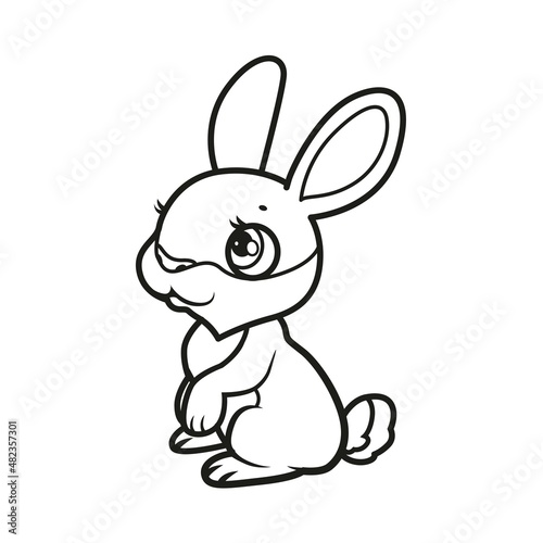 Obraz premium Cute cartoon baby rabbit outlined for coloring book on white background