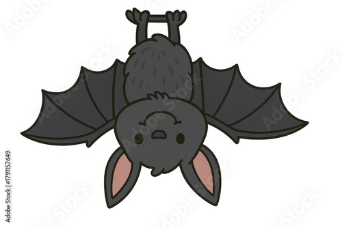 © Krtola , Obraz premium Cute cartoon bat hanging upside down, sleeping character, friendly animal illustration with transparent background