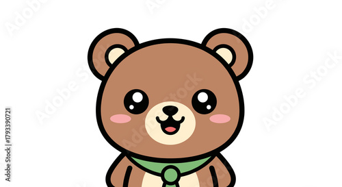 © Nataliia, Fototapeta premium Cute cartoon bear character with scarf smiling on white background