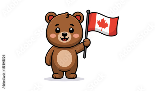 Obraz premium Cute Cartoon Bear Holding a Canadian Flag Symbolizing Patriotism