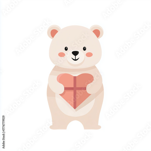 Obraz premium Cute cartoon bear holding pink heart gift for Valentine’s Day