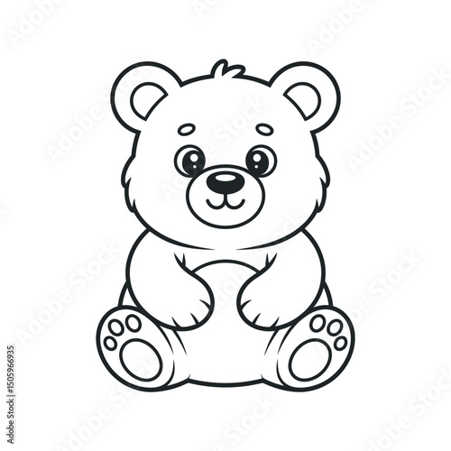 © MOHAMMAD, Naklejka premium Cute Cartoon Bear Sitting Down Simple Black and White Line Art Illustration for Coloring Books and Children s Designs Isolated on White