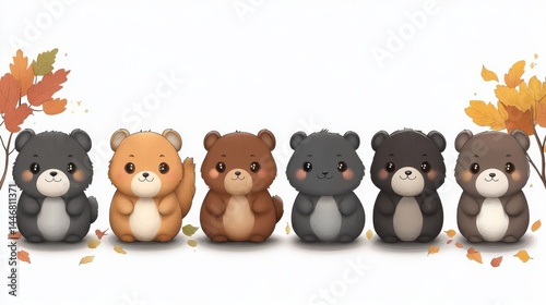 Naklejka premium Cute cartoon bears in autumnal scene.
