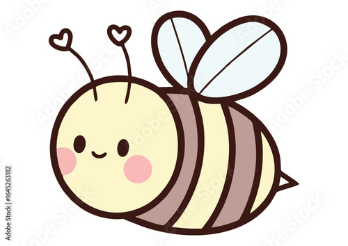 © Natalia, Obraz premium Cute cartoon bee character illustration with a happy expression and heart-shaped antennas