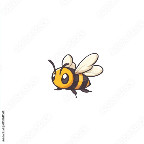 © lestari, Obraz premium Cute cartoon bee flying, simple background, children's book illustration
