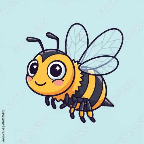 © Ridwan, Obraz premium Cute cartoon bee with big eyes and a friendly smile.