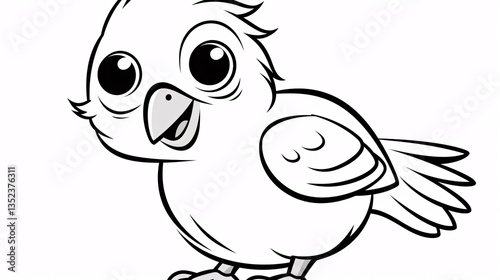 © PixelHarbor_PRODM, Fototapeta premium Cute cartoon bird coloring page for kids, simple line art with minimalist black and white design.