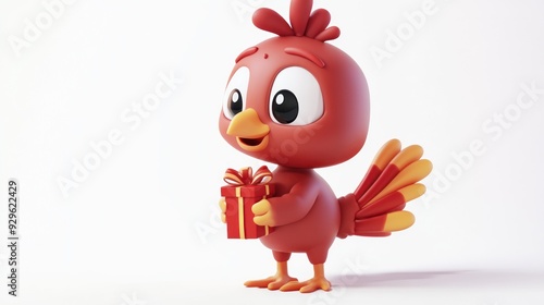 © BerkahStock, Naklejka premium Cute Cartoon Bird Holding a Gift