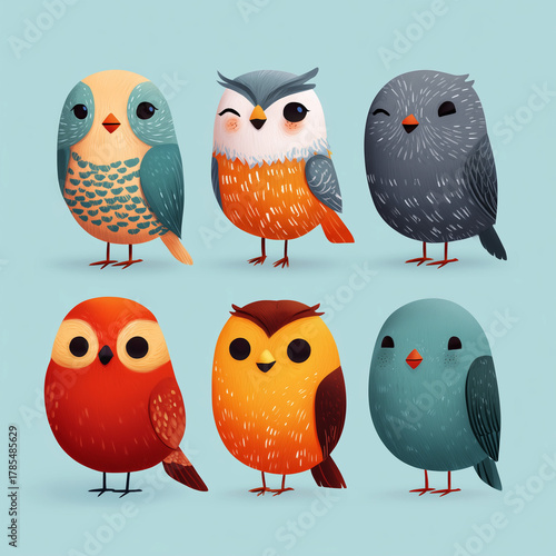 © MuhammadBilal, Fototapeta premium Cute Cartoon Birds for National Bird Day Greeting