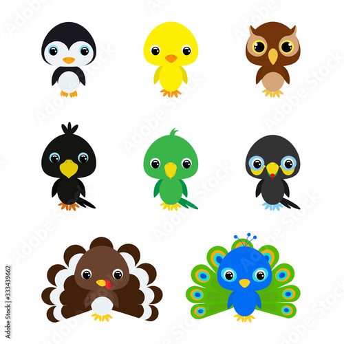 Fototapeta premium Cute cartoon birds illustration for children. Flat vector stock illustration