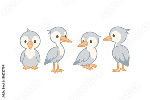 Obraz premium Cute cartoon birds set with different poses and expressions on white background