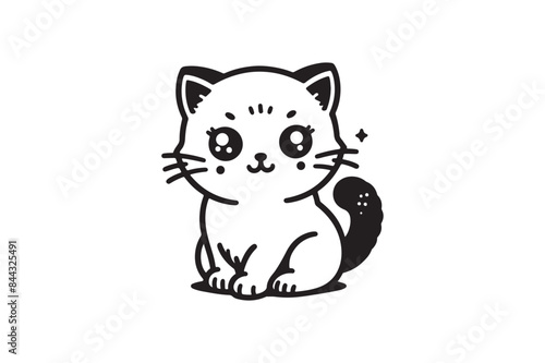Fototapeta premium Cute cartoon black and white cat silhouette vector illustrator with white...
