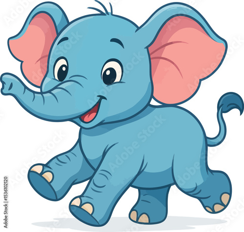 Fototapeta premium Cute Cartoon Blue Elephant with Big Ears and Happy Smile vector illustration