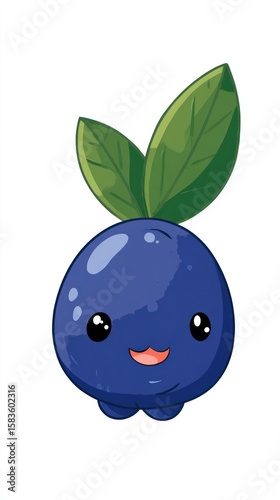 © Nonton, Obraz premium Cute cartoon blueberry with leaves