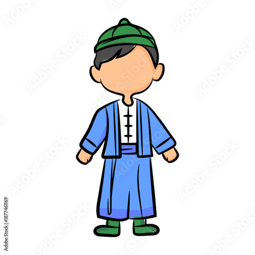 Fototapeta premium Cute Cartoon Boy Wearing Traditional Asian Clothing