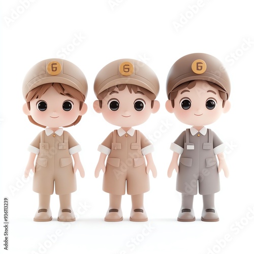 © Neural Canvas, Naklejka premium Cute cartoon boys in uniforms standing together, showcasing playful design and vibrant colors, perfect for children's themes.