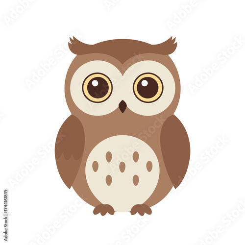 Fototapeta premium Cute Cartoon Brown Owl Vector Illustration in Flat Design Style
