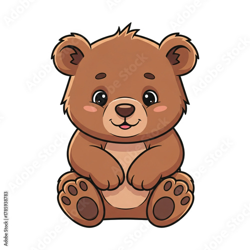 Obraz premium Cute cartoon brown teddy bear sitting with a happy expression isolated on...