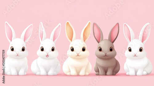 Fototapeta premium Cute Cartoon Bunnies Clip Art – Adorable Easter-Themed Illustrations with Chubby Cheeks and Expressive Eyes