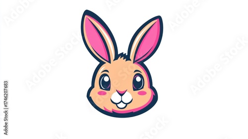 Fototapeta premium Cute cartoon bunny head, white background, mascot design