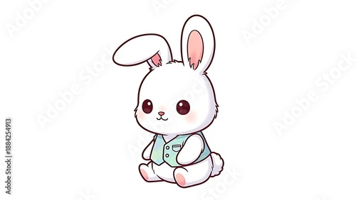 © Naila, Obraz premium Cute cartoon bunny in a blue vest sitting happily