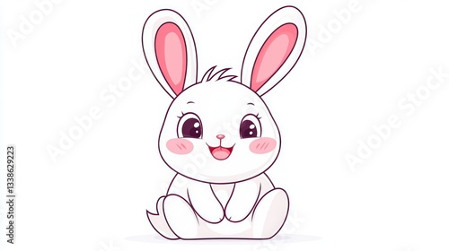 Obraz premium Cute cartoon bunny sitting, cheerful expression