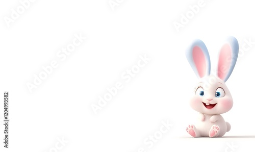Fototapeta premium Cute cartoon bunny sitting, white background, Easter (2)
