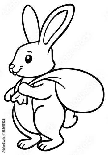 Obraz premium Cute cartoon bunny wearing a cape and carrying a large sack on its back