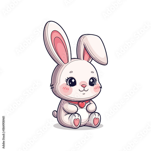 © Rabi, Obraz premium Cute cartoon bunny with big ears and red bowtie sitting