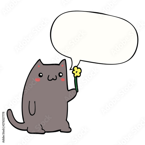 © lineartestpilot, Obraz premium cute cartoon cat and speech bubble