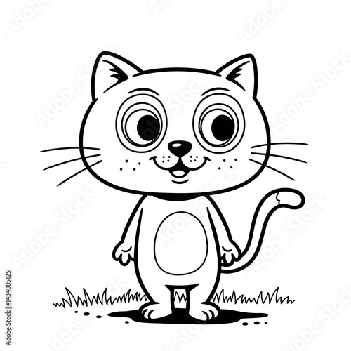 © Ludmila, Fototapeta premium Cute cartoon cat character standing on grass