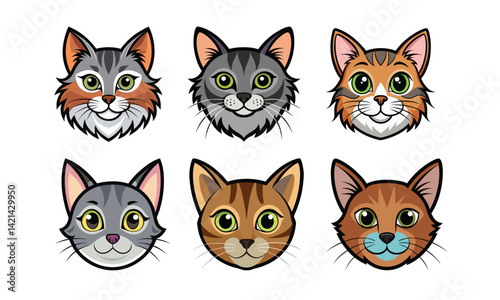 © MD TANBIR AHMED, Fototapeta premium Cute cartoon cat face vector collection isolated on white background,