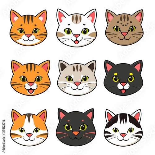 © Nellys, Fototapeta premium Cute cartoon cat head vector art illustration bundle set