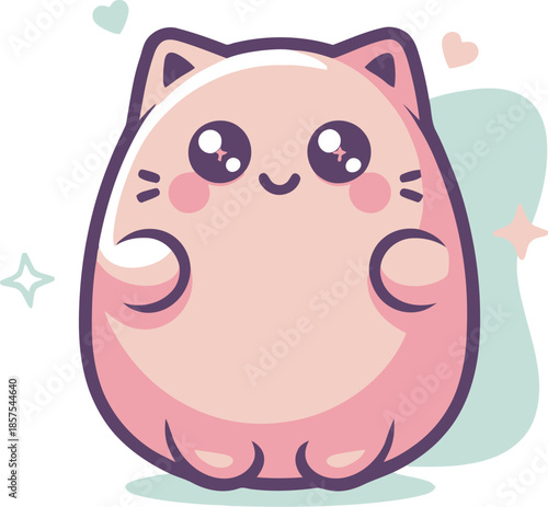 Naklejka premium Cute Cartoon Cat Vector Graphic Illustration with Pastel Colors and Kawaii Design Elements for Digital Projects