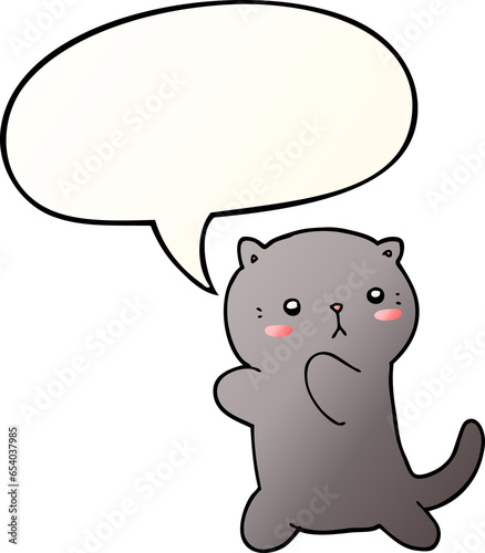 Obraz premium cute cartoon cat with speech bubble in smooth gradient style