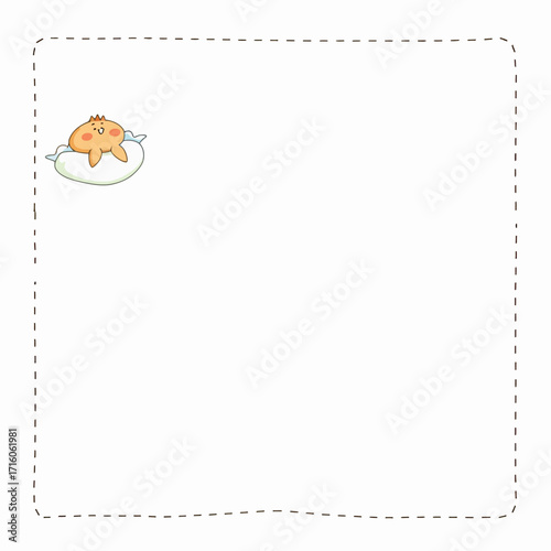 © Tatyana, Fototapeta premium Cute Cartoon Character Floating in a Minimalist Dotted Frame with Soft Pastel Colors in a Simple Illustration