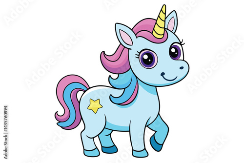 © Abu hamed shah, Naklejka premium Cute cartoon character happy magic unicorn on white