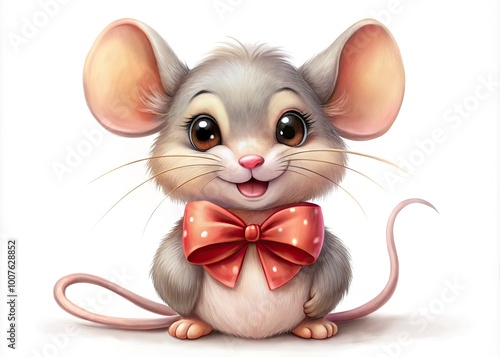 Obraz premium Cute cartoon character illustration featuring a whimsical mouse with a bow...