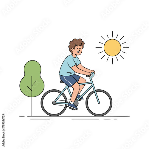 © Khud, Fototapeta premium Cute Cartoon Character Morning Cycling Vector Illustration