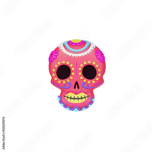© ArtsTaras, Fototapeta premium Cute cartoon character of Skull on Dia De Los Muertos. 3d render.