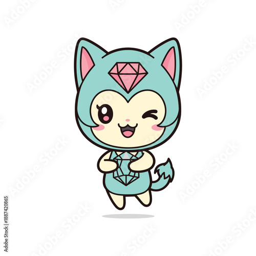 Obraz premium Cute cartoon character wearing blue fox costume with diamond emblem