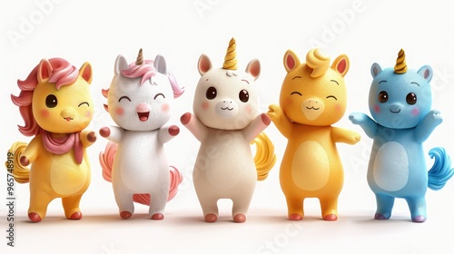 Naklejka premium Cute Cartoon Characters in Dub Dance Poses: Unicorn, Cat, Chicken, Cow...