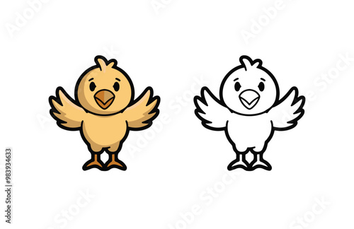 © Tasnim, Obraz premium Cute cartoon chick baby vector illustration isolated on a white background, simple design outline style