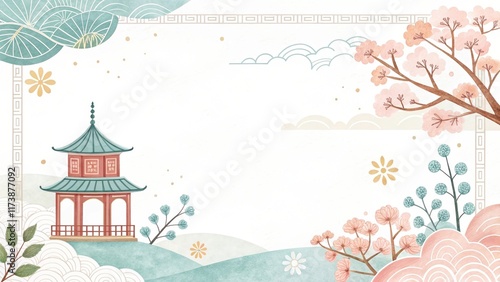 Fototapeta premium cute cartoon Chinese pattern watercolor background