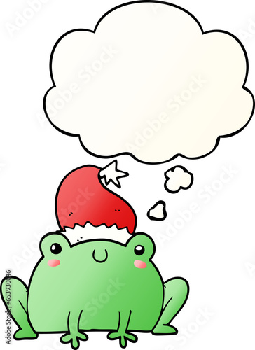 © lineartestpilot, Fototapeta premium cute cartoon christmas frog with thought bubble in smooth gradient style